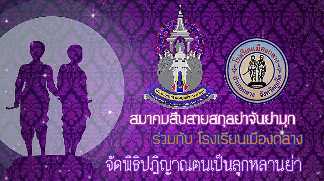 ? สมาคมสืบสายสกุลย่าจันย่ามุก ร่วมกับโรงเรียนเมืองถลาง จัดพิธีพิธีปฏิญาณตนเป็นลูกหลานย่าของคณะครู นักเรียนและบุคลากรทางการศึกษา เพื่อเป็นการยกย่องเชิดชูประกาศเกียรติคุณในวีรกรรมของท้าวเทพกระษัตรี ท้าวศรีสุนทร ให้เป็นที่ปรากฎแก่ลูกหลาน และเป็นขวัญและกำลังใจในการปฏิบัติงาน การเรียน อีกทั้งยังเป็นการสร้างจิตสำนึกและความภาคภูมิใจในประวัติศาสตร์ท้องถิ่นถลาง ให้กับลูกหลานสืบไป